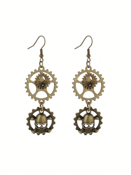 ROMWE Goth 4 piezas Aretes colgantes con engranajes metálicos de estilo steampunk + Brazalete de encaje gótico con calavera + Gargantilla de terciopelo victoriano con araña para fiesta de disfraces, disfraz de Halloween