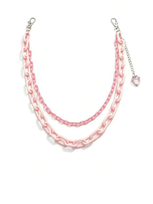 ROMWE Kawaii 1 pieza Cadena para pantalones de mujer con forma de fresa de acrílico rosa de doble capa, dulce y fresco, para el Día de San Valentín escolar