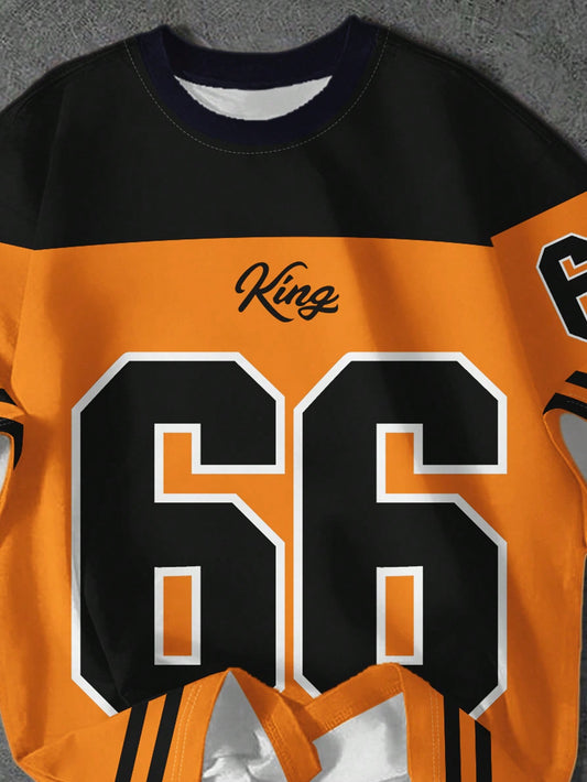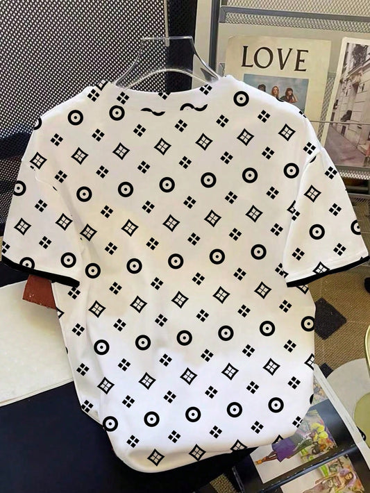 SHEIN EZwear Camiseta holgada de mujer con cuello redondo y estampado minimalista casual del número 66