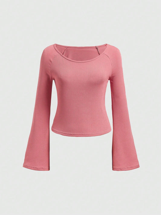 SHEIN EZwear Pantalones acampanados unicolor tejido de canalé
