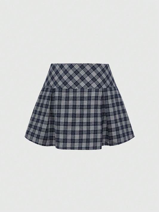 ROMWE Kawaii Falda mini casual de línea A con decoración de lazo a cuadros para mujer, verano