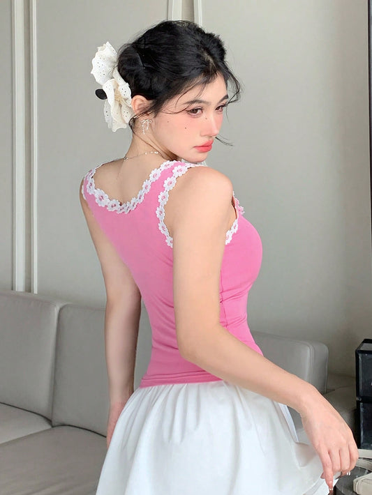 ROMWE Fairycore Camiseta de tirantes vintage de encaje para mujeres con diseño de nudos