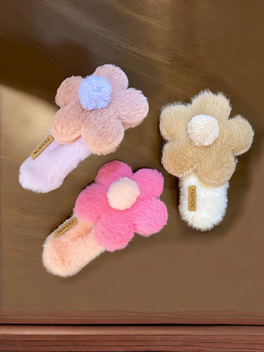 Joivida Clip para el cabello con flor de felpa multicolor con tema otoñal, clip para el cabello con patrón de flor de felpa, clip para el cabello con flor de punto todo en uno