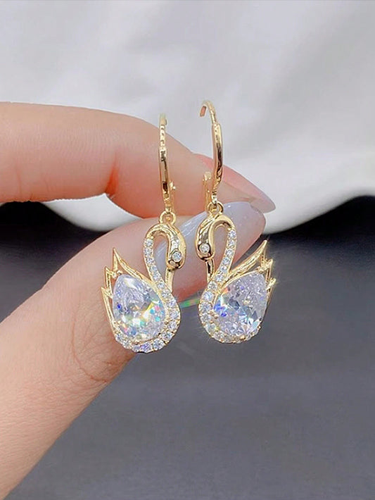 1 par de pendientes elegantes y de alta gama con diseño de cisne de cristal incrustado, para uso diario y de fiesta, regalo de Navidad limitado