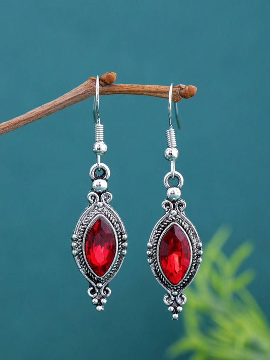 Pendientes con colgante de vidrio en forma de rombo con incrustaciones de rubí y diamantes de imitación, diseño elegante y minimalista adecuado para uso diario y fiestas