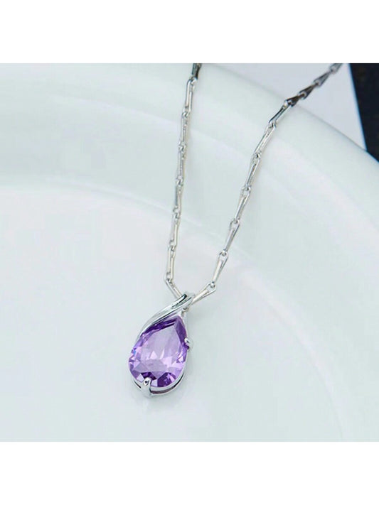 1 pieza Collar de compromiso para mujer, colgante con decoración de circonita cúbica de metal color plata clásico, regalo de joyería para compromiso/boda/cumpleaños/aniversario