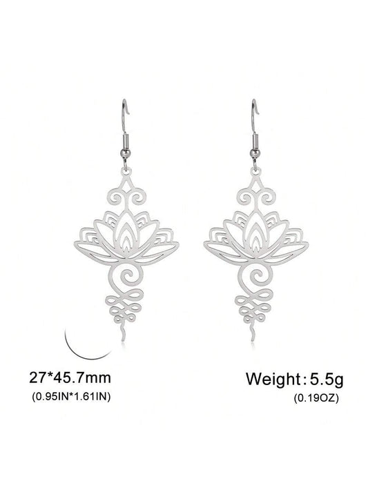 1 par de pendientes con forma de flor de loto de acero inoxidable de moda para mujeres, ideal para el Día de San Valentín