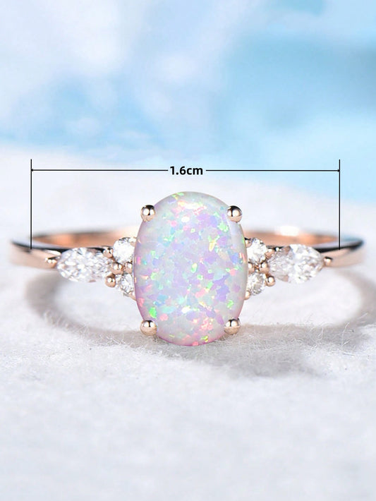 1 Pieza Anillo De Promesa De Moda Con Óvalo Opal Reflejando Luces Multicolor Y Diamante De Imitación Brillante, Anillo Para Mujeres De Compromiso/boda
