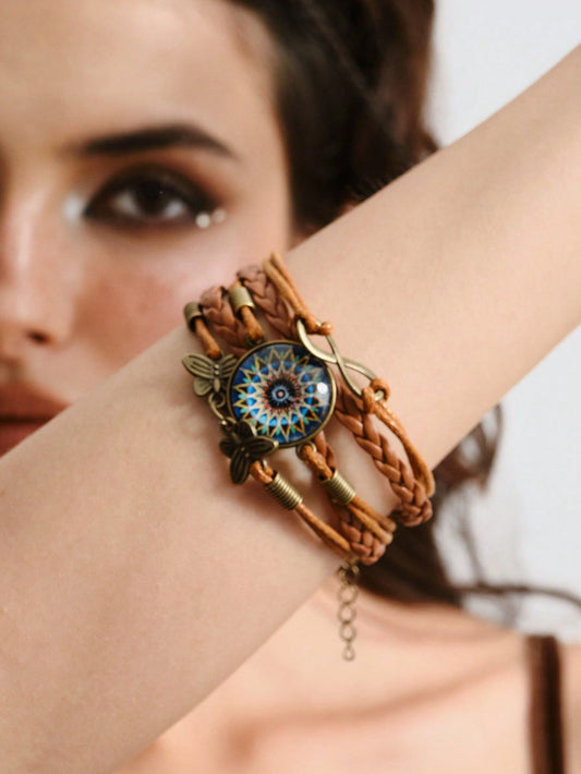 ROMWE Hippie Brazalete trenzado de estilo vintage con gema de mandala bohemio infinito y dije de mariposa