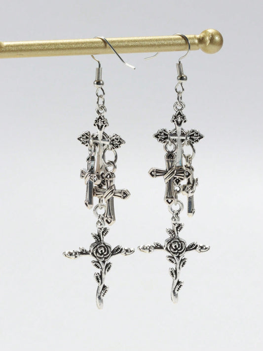 ROMWE Goth 1 par de pendientes góticos de estilo Halloween con forma de cruz para Navidad
