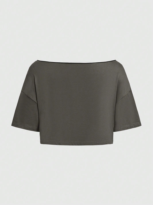 ROMWE Grunge Punk Camiseta suelta de mujer corta con hombros al descubierto, estampado de lema "NO talla grande REGLAS", escolar