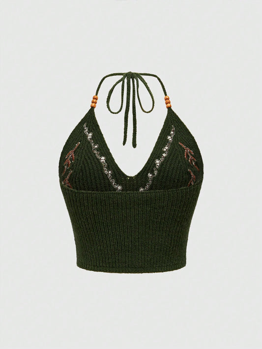ROMWE Hippie Blusa de tirantes de estilo hippie con cuentas, de suave estampado de leopardo, en estilo vintage para el verano