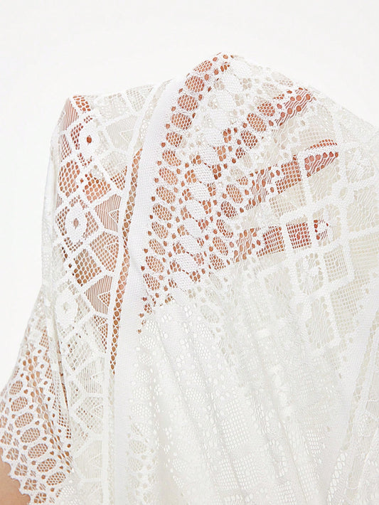 ROMWE J-Fashion Blusa de mujer con paneles de encaje y hombros descubiertos