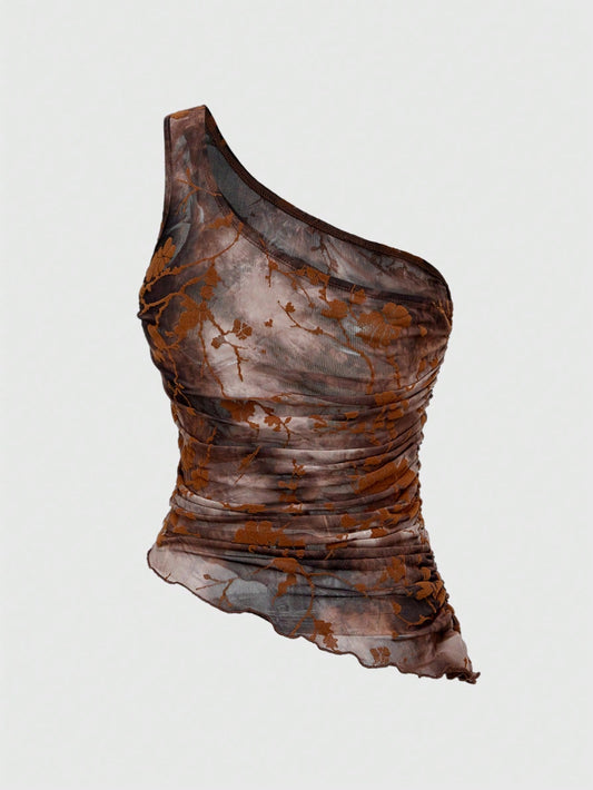 ROMWE Hippie Top sin mangas con efecto arrugado lateral y estampado de teñido anudado con estilo hippie para mujer