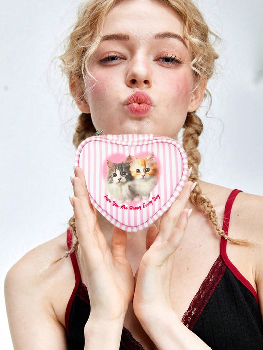 ROMWE Kawaii Monedero y bolsa de almacenamiento con forma de gato de rayas de dibujos animados lindos color rosa 348640