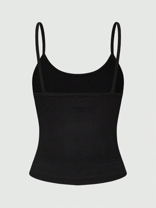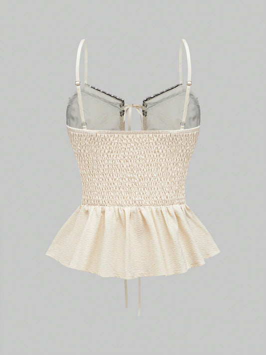 ROMWE Kawaii Top de tirantes con cordón delantero ribete fruncido mujer