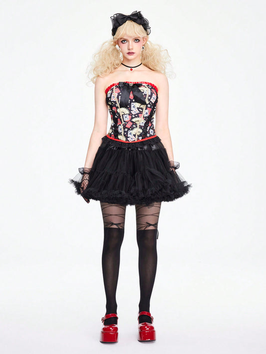 ROMWE Kawaii Top tubo decorado con lazo rojo para el Día de San Valentín