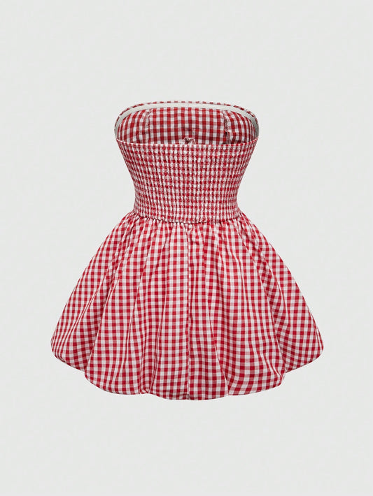 ROMWE Kawaii Vestido mini con estampado floral de vichy lindo para mujeres