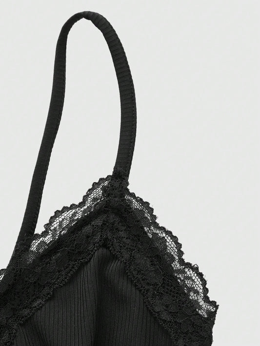 ROMWE Top de tirantes versátil con patchwork de encaje, rayas y bordado de estrellas