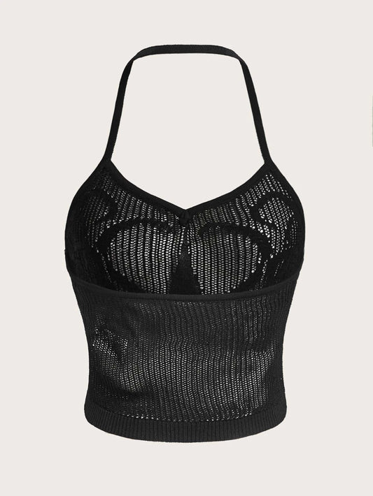 ROMWE Top De Punto Hueco Con Tirantes Para Atar En Los Hombros