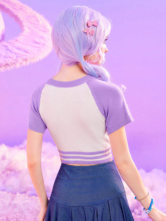 ROMWE X Care Bears Sudadera De Manga Corta Corta Con Estampado De Letras De Dibujos Animados A Bloques De Color