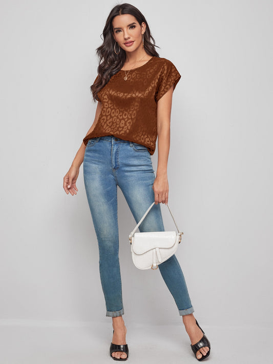 SHEIN Clasi Top de manga murciélago de leopardo jacquard