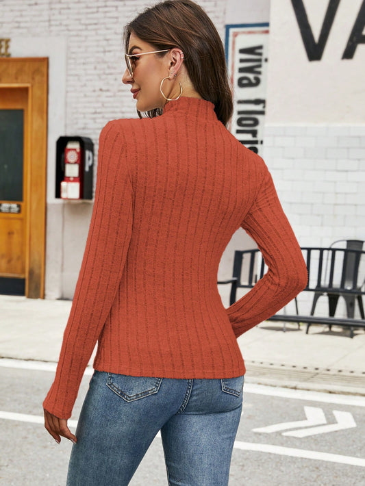 SHEIN Clasi Playera de manga larga ajustada al Body con cuello alto de unicolor para mujer de primavera/verano
