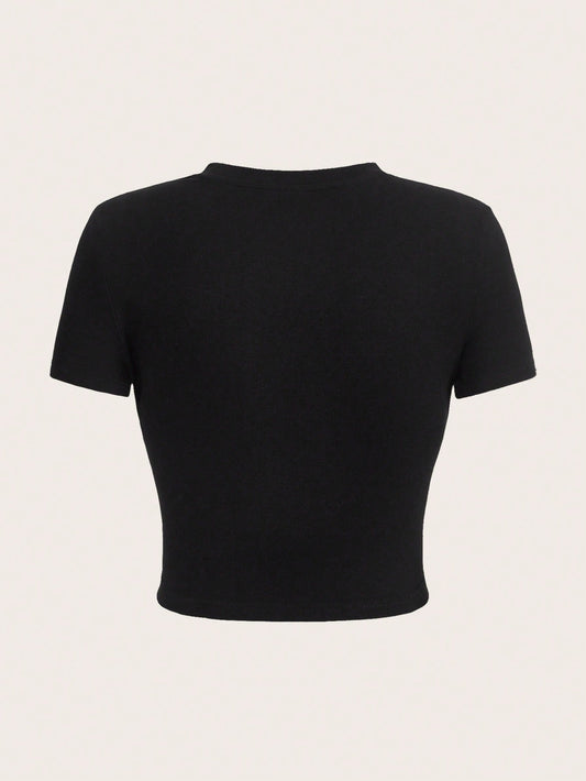 SHEIN Coolane Camiseta ajustada de manga corta con cuello redondo y estampado de araña, apropiada para el verano, para mujeres
