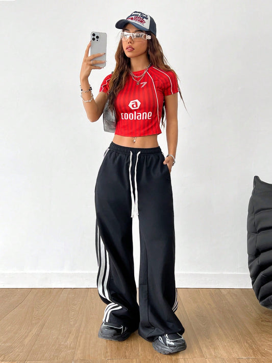 SHEIN Coolane Pantalones deportivos holgados y cómodos con rayas, para mujeres, estilo callejero ideal para volver al colegio en verano