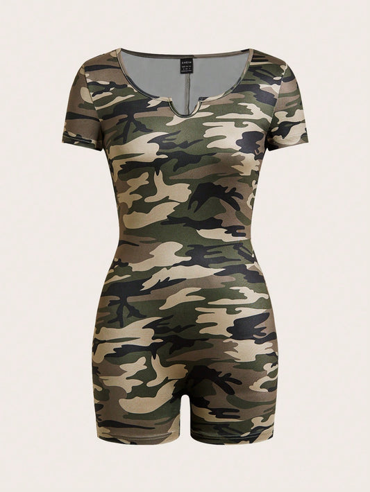 SHEIN Coolane Mono univocador de camuflaje para mujer, ajustado al Body, adecuado para el verano