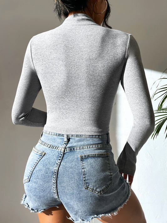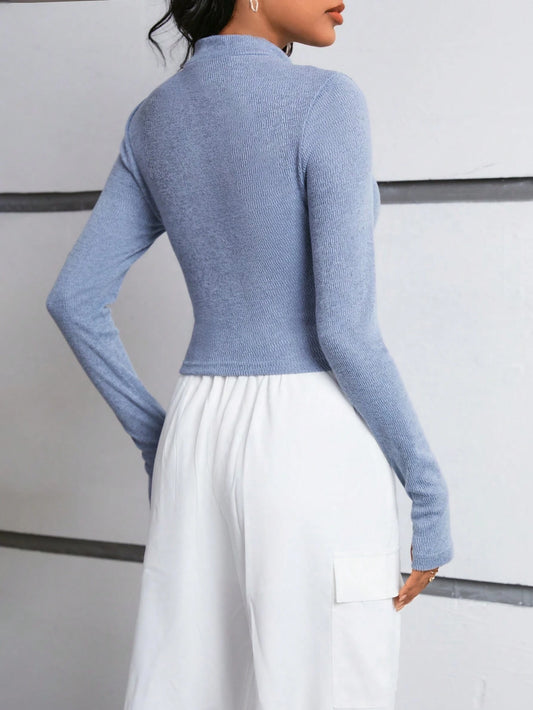 SHEIN Essnce Camiseta Elegante Con Agujero Para El Pulgar Y Cremallera Para Mujer