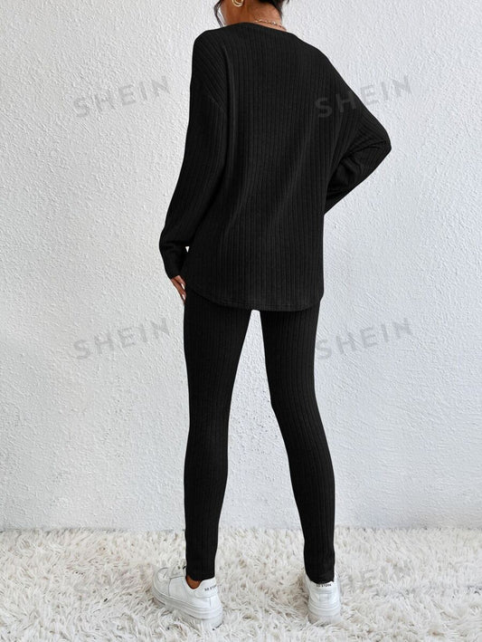 SHEIN Essnce Camiseta de hombros caídos & Leggings