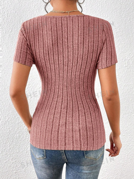 SHEIN Essnce Camiseta tejida de canalé con botón