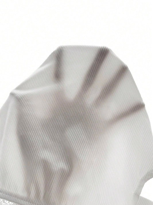 SHEIN Essnce Camiseta de primavera/verano para mujer con diseño de hombros descubiertos y ribete de encaje