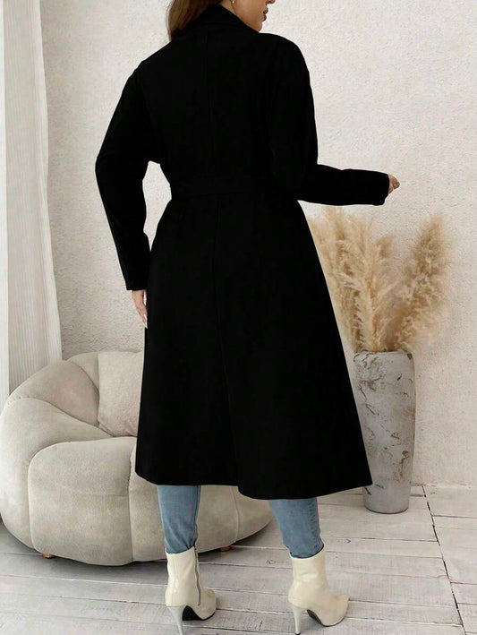 SHEIN Essnce Talla grande Gabardina de doble botonadura con cinturón