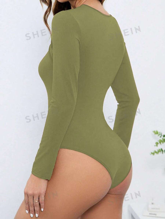 SHEIN Essnce Monos De Manga Larga Con Cuello Redondo Para Mujer Y Con Huecos