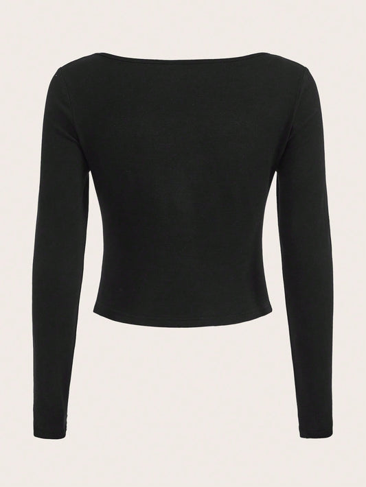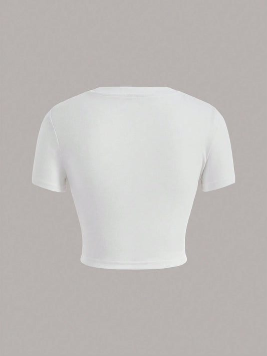 SHEIN EZwear Camiseta crop con botón delantero ribete en forma de lechuga