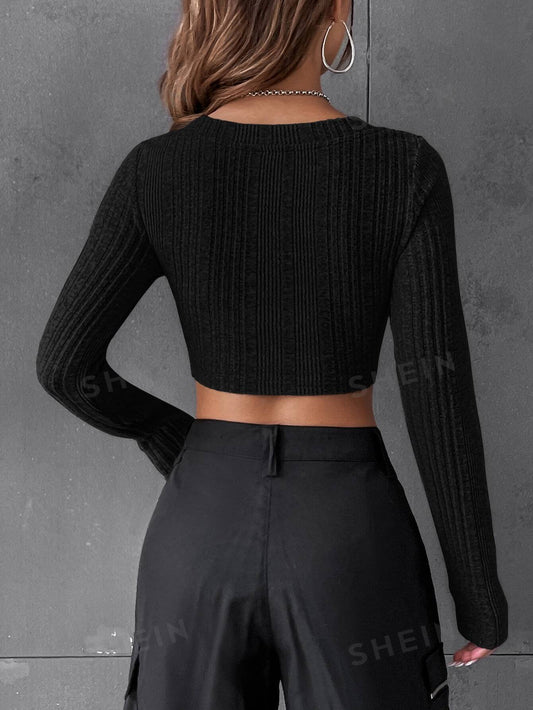 SHEIN EZwear Camiseta crop con estampado de letra de dos tonos con cremallera