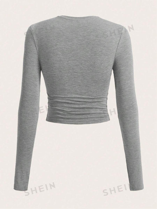 SHEIN EZwear Camiseta crop de cuello scoop fruncido lateral