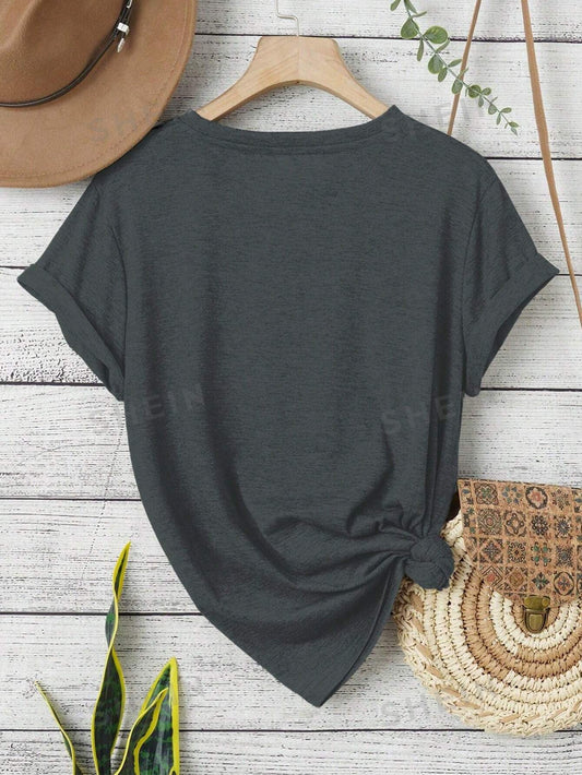 SHEIN EZwear Camiseta De Manga Corta Con Letras Impresas Para Mujer
