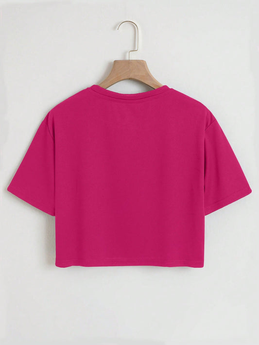 SHEIN EZwear Camiseta crop con estampado de letra ribete en contraste