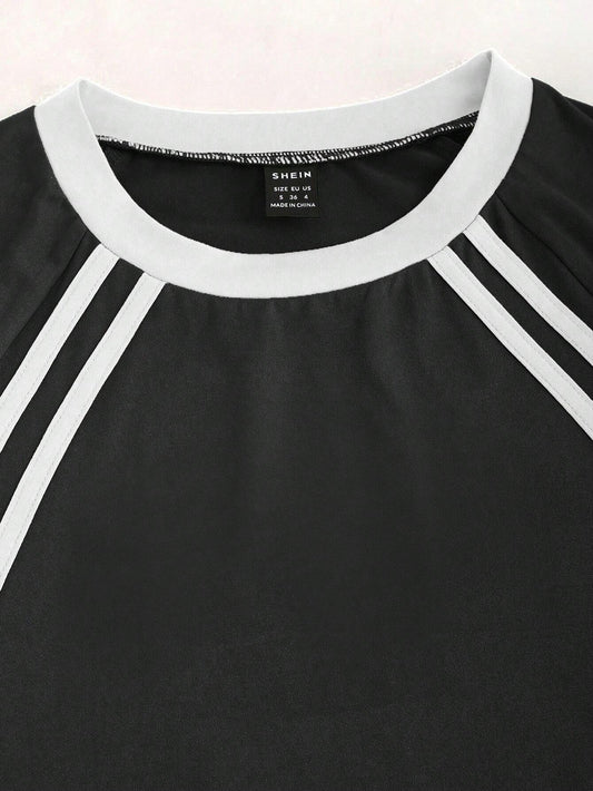 SHEIN EZwear Camiseta de ajuste ceñido de manga corta y cuello redondo con contraste de colores para mujer