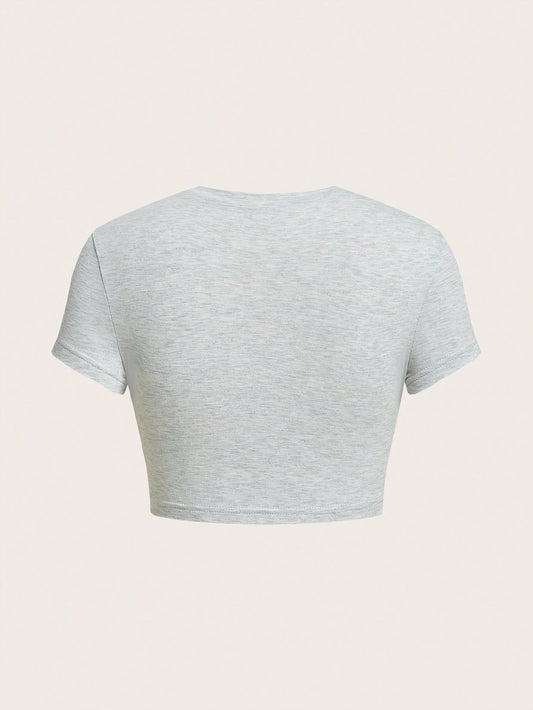 SHEIN EZwear Camiseta entallada de punto gris para mujeres