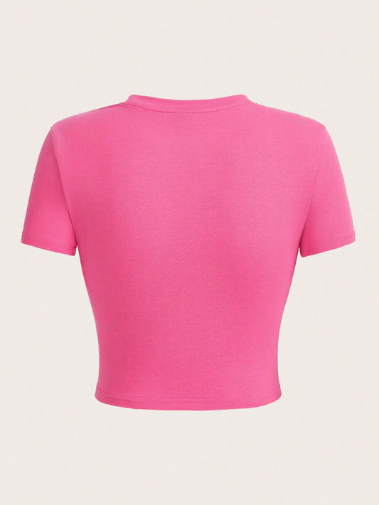 SHEIN EZwear Camiseta unicolor bajo hanky