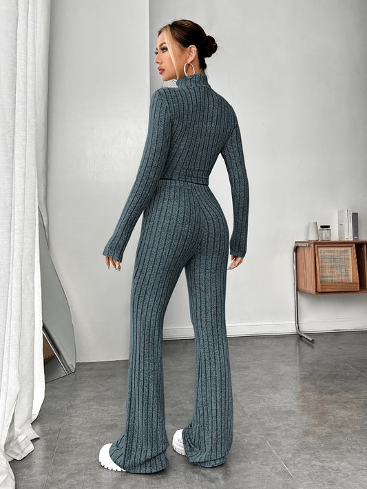 SHEIN EZwear de cuello alto Camiseta crop & Pantalones acampanados