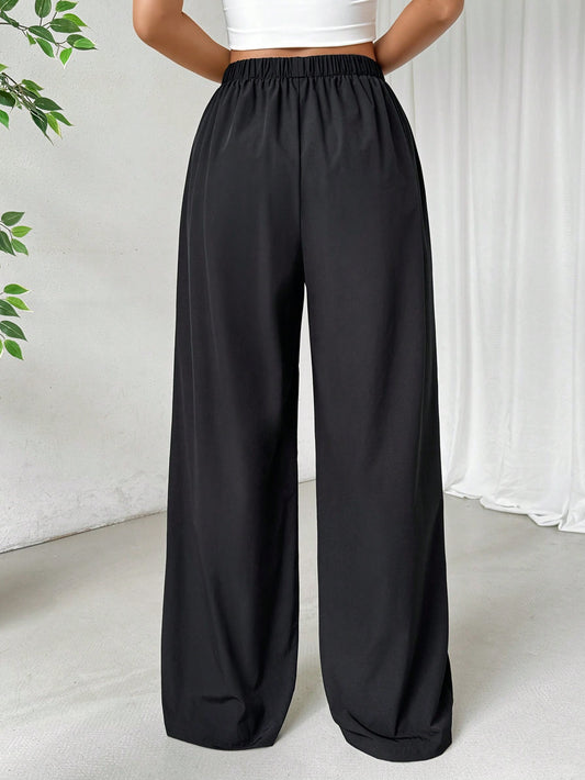 SHEIN EZwear Pantalón de pierna ancha para mujer de unicolor con bolsillos, transpirable y de secado rápido