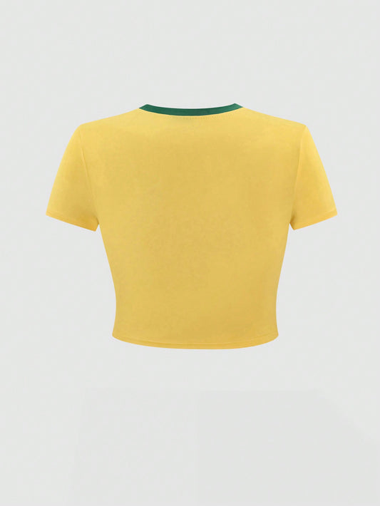 SHEIN EZwear Top corto informal de mujer de manga corta con impresión de letra, verano