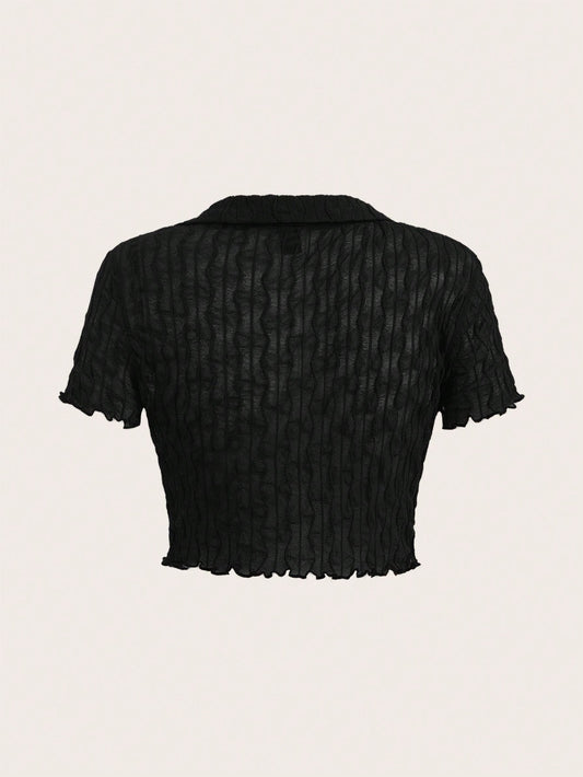 SHEIN EZwear Top con cordón delantero ribete en forma de lechuga de malla