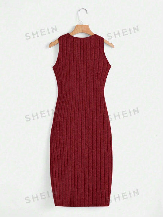 SHEIN EZwear Vestido unicolor fruncido tejido de canalé de muslo con abertura
