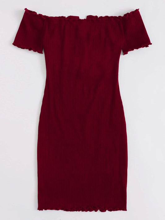 SHEIN EZwear Vestido ribete en forma de lechuga de hombros descubiertos escote V